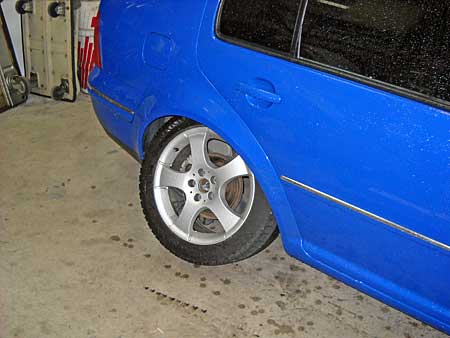 タイヤこんなに傾き、今にも外れそうです。